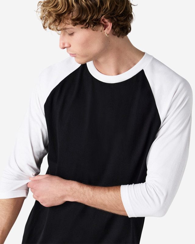 - Contrasting 3/4 raglan sleeves